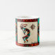 This is a Unique "One of a Kind" Southwest Kokopelli Coffee Mug! It Features a Southwest Kokopelli Playing the Flute and Dancing Under the Sun on a Sandstone Background...Surrounded by a Southwest Border in Turquoise, Orange & Black!