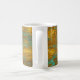 This is a Unique "One of a Kind" Southwest Kokopelli Coffee Mug! It Features a Gold Kokopelli Playing the Flute and Dancing Under a Gold Sun on a Copper, Black & Turquoise Background!