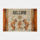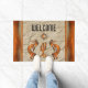 Personalize this Unique "One of a Kind" Southwest Kokopelli Doormat! It Features a Two Copper Kokopelli Playing the Flute and Dancing Around a Cactus Under the Sun on a Tan Stone Background...Surrounded by a Copper Border!