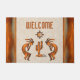 Personalize this Unique "One of a Kind" Southwest Kokopelli Doormat! It Features a Two Copper Kokopelli Playing the Flute and Dancing Around a Cactus Under the Sun on a Tan Background...Surrounded by a Copper Border!
