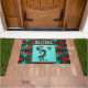 This is a Unique "One of a Kind" Southwest Kokopelli Doormat! It Features a Kokopelli Playing the Flute and Dancing Under the Sun on a Turquoise Background...Surrounded by a Southwest Border in Turquoise, Orange & Black!