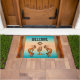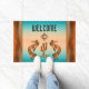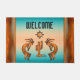 Personalize this Unique "One of a Kind" Southwest Kokopelli Doormat! It Features a Two Copper Kokopelli Playing the Flute and Dancing Around a Cactus Under the Sun on a Turquoise and Orange Sunset Background...Surrounded by a Copper Border!