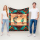 This is a Unique "One of a Kind" Southwest Kokopelli Sherpa Blanket! It Features a Kokopelli Playing the Flute and Dancing Around a Cactus Under the Sun in the Desert ...Surrounded by a Southwest Border in Turquoise, Orange & Black
