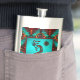This is a Unique "One of a Kind" Southwest Kokopelli Flask! It Features a Kokopelli Playing the Flute and Dancing Under the Sun on a Turquoise Background...Surrounded by a Southwest Border in Turquoise, Orange & Black!