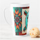 This is a Unique "One of a Kind" a Southwest Kokopelli Latte Mug! It Features a Kokopelli Playing the Flute and Dancing Under the Sun on a Tan Sandstone Background...Surrounded by a Southwest Border in Turquoise, Black and Orange Flames!