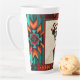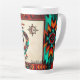 This is a Unique "One of a Kind" Southwest Kokopelli Latte Mug! It Features a Southwest Kokopelli Playing the Flute and Dancing Under the Sun on a Sandstone Background...Surrounded by a Southwest Border in Turquoise, Orange & Black!