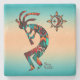 This is a Unique "One of a Kind" Southwest Kokopelli Stone Coaster! It Features a Southwest Kokopelli Playing the Flute and Dancing Under the Sun on a Turquoise and Orange Sunset Background!