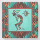 This is a Unique "One of a Kind" Southwest Kokopelli Stone Coaster! It Features a Kokopelli Playing the Flute and Dancing Under the Sun on a Turquoise Background...Surrounded by a Southwest Border in Turquoise, Orange & Black!