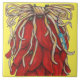 Accented with a little blue lizard, the top tile of my multi-tile chile ristra mural design features bright red chiles strung together with a casual raffia bow. Available in two tile sizes, you can build a red chile ristra tile mural or a unique, custom house number display. The middle tiles in the ristra are available with white numerals #0 to 9 as well as one with no numbers. Choose what works best for you in your welcoming southwest design! Has a cheerful yellow background. All tiles are available in my Collection. Original artwork & design by tile artist Tuzi Williams.