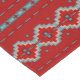 An original design in a bold red and turquoise geometric pattern created by Artellus. The artist was inspired by the colours and patterns around her home in the desert southwest.