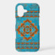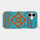 Personalize this southwest style phone case with a name, text, or none at all on my original design inspired by the ancient volcanic mountain peaks near my home in the Southwest. Featuring an abstract background representing the turquoise and copper materials of the west and geometric patterns symbolizing the three peaks and southwest style motifs.