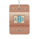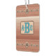 Personalize this air freshener with your own initials or monogram on a design inspired by the amazing layers of sandstone colours the artist saw when visiting the hoodoos of Bryce Canyon and the geometric designs distinctive to her surroundings in the desert southwest. Textured ombre bands of pink, peach and sienna sandstones are accented by bands with coppery conchos and turquoise stones on southwest style diamonds.