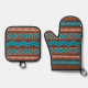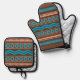 Southwest Style Geometric Cameron Gorge Design Oven Mitt & Pot Holder Set