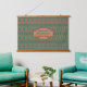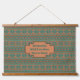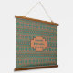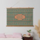 Personalize this hanging wall tapestry with your own text or name on a verdigris copper patina coloured background with modern geometric borders in coppers, teals and turquoise inspired by the colours and patterns of the artist's home in the desert southwest.