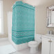 Inspired by the beautiful Turquoise "Sky Stone" mined in the Southwest, this original design features a turquoise and silver-grey background accented with printed geometric patterns. Southwest, Santa Fe, desert, western or lodge style.