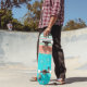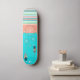 Dd brand skateboard, done in the Southwestern inspired colours of turquoise, coral, blush and mint. Graphics of a sun catcher and feathers decorate the board. Customize to add your own text.