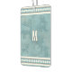 Personalize this air freshener with your initial, name or text on a design featuring a printed blue and grey rock texture background with geometric pine tree borders and deer drawings based on actual petroglyphs found in Arizona and Utah.