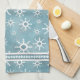 Inspired by the rocks, design elements and petroglyphs distinctive to the artist's surroundings in the southwest, this original artwork features a turquoise and silver grey background with geometric snowflakes, pine tree borders and deer drawings based on actual petroglyphs found in Arizona and Utah.