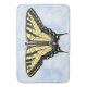 This design is of a black and yellow Western Swallowtail butterfly, one of the most beautiful large butterflies in the world, floating on a blue sky with puffy white couds. My original painting is based on photographs I took in my own butterfly-friendly garden in the Southwest.