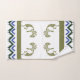 Southwest Style Arizona Kokopelli Bathroom Towels. Kokopelli bathroom towel set. Vivid green, white and blue colour combination that you can customize background colours to match your decor. Kokopelli Native American Indian cultures. Attributed to ancient aliens or tribal art and inspired by cave and rock drawings. Customize your Southwestern Style Native American towel set colours and styles. Great gift idea.