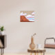 Print in a boho / minimalist style illustration of a Southwestern desert scene with a red rock mesa and clouds