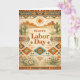 This striking Labor Day design celebrates work and resilience through bold Southwestern-inspired patterns and earthy beauty. Set on a softly textured, sun-warmed background, the message “Happy Labor Day” is framed by geometric tribal motifs, arrow patterns, and woven textile borders. Cacti, desert wildflowers, mesas, and a radiant sun anchor the composition in the American Southwest, symbolizing endurance, craftsmanship, and connection to the land. The warm palette of terracotta, turquoise, sand, and sage gives this piece a grounded, heritage-rich feel with regional character and timeless strength.