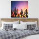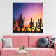 Premium Wrapped Canvas wall hanging decor printed with a Southwestern Desert Landscape Cactus Sunrise Image mixed media graphic art design illustration by TheFabricSeal at Zazzle #ZazzleMade https://www.zazzle.com/store/thefabricseal