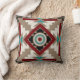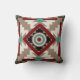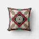 Throw pillow with a southwestern inspired design in earth tones of brown, red, black, and cream with turquoise accents.