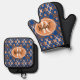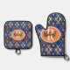 Infuse your kitchen with Southwestern charm using our Aztec-inspired oven mitt and pot holder set. Featuring a striking geometric tribal pattern in neutral tones against a deep blue backdrop, this set adds a bold visual appeal to your cooking space. Customize the background colour to perfectly match your décor and add your initial and name for a truly personalized touch. Elevate your kitchen's style while enjoying the practicality and unique design of this must-have set. Treat yourself or gift it to someone special for a blend of functionality and Southwestern flair.