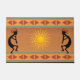 Southwestern Sun Kokopelli Rug Doormat Vivid colour combination that you can customize background colours to match your decor. Kokopelle Native American Indian cultures. Attributed to ancient aliens or tribal art and inspired by cave and rock drawings. Customize your Southwestern Style Native American door mat rug colours and styles. Great gift idea.