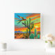This is an original, colourful southwestern background with a parrot flying in the native American sunset of the great west. This is a beautiful background set in oranges and reds and greens with cactus in the background.