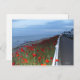 Picturesque Southwold, Suffolk photo of seafront taken at dusk showing poppies cascading by beach.