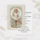 Personnalisez cette belle Carte de Souvenir de la Première Communion Catholique avec une image de la main de Jésus levée en bénédiction à l'intérieur de l'hôte. Les anges sont dans les ornements ci-dessous et de jolies fleurs pastel grace l'autel où se trouve le chalice.