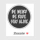 Soyez Bizarre, Soyez Rude, Restez Vivant Sticker