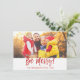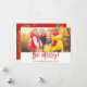 Soyez Joyeux Noël Carte photo de script Lettré à la main. La photo et le texte de ce script de brosse manuscrite peuvent être mis à jour et customisés avec votre photo et votre nom de famille. Cette carte affiche également le nom de famille et une feuille d'or au dos de la carte de Noël.