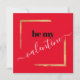 Cette élégante carte rouge de Saint-Valentin a "Be my valentine" dans un audacieux script noir et blanc à l'avant, encadré d'une brosse cassée en or. Au verso, il y a de l'espace pour customiser avec votre propre message spécial dans une police de script blanc, ou simplement supprimer si vous voulez rester anonyme... wink, wink...