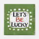 "Let's Be Lucky" est un design de texte mignon avec une forme d'accent blanc entourée de points blancs texturés.