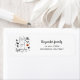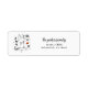 Un étiquette de retour de fête d'Halloween avec des illustrations éffrayantes.