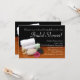 Spa Bridal Shower Invitations, perfect for a mani pedi party or ladies' night out. Elegant spa, massage therapy or salon setup. Still life scene includes items that would be used for a spa treatment including mineral bath salts soak, scented or natural body oil, hot stones for heated massage, clean white towels and a pretty pink flower, on a wood table with black background. Enjoy a bridal shower girl's day of relaxation and luxury of soothing spa, pedicure and facial services.
