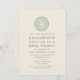 A spa party invitation featuring an illustration of a cucumber slice at top. Personalize the green text with details of your occasion.