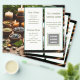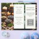 Spa and wellness business brochure folded flyer. Candles and stones in little dishes is the background image on side one where two panels hold text. Add a logo to the front page, with five, off-white panels to customize on both sides of 8.5 x 11 inch paper which will be folded in thirds after purchase. Side one contains text for the front - with business name, tag line, and logo. It will also be the back of flyer after folding. Side two is all the text, photos and QR code, which will be inside when the folds are opened. Text is dark green printed fonts.