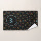 This bath towel set features a Mid Century Space Age atomic inspired motif interspersed with random dots in a colourful pattern. All four colours and the background may be edited for a custom look. The hand towel features an easy to personalize monogram.