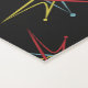 This yoga mat features a Mid Century Space Age atomic inspired motif interspersed with random dots in a colourful pattern. All four colours and the background may be edited for a custom look. Monogram text is easily personalized.