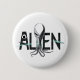 Stand out with this unique button. The word "ALIEN" is creatively styled with an octopus-like alien replacing the letter "I" in the middle. Perfect for sci-fi lovers, this fun and quirky design adds a bold, extraterrestrial touch to your look.