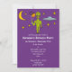 Throw an out-of-this-world birthday party with these custom invites featuring an illustration of a lime green space alien holding a pair of planet-shaped balloons.