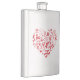 The product is a good size and came exactly as it was pictured. The lid is not attached to the flask, which could be dangerous on drunken nights... The print came out surprisingly well and looks very sharp. Would definitely recommend.