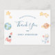 Thank your guests for celebrating the mama to be! This thank you postcard features watercolor illustrations of featuring a watercolor baby astronaut and space elements including planets, stars, a rocket and UFO. Personalize with your information or click "Click to customize further" to edit font styles, size and colours.