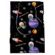 Customize this wrapping paper with the template. If you prefer no words simply use the template to delete the words. This design features a space cat astronaut, a space dog astronaut, constellations, stars, meteoroids, planets, and spaceships.