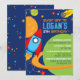 Extérieur Spatiale Rocket Invitation Anniversaire Fête. Imprimé avec enveloppes ou Téléchargement numérique. Dans la marine, bleu, orange, jaune, vert et rouge. Star Space Back. Roquette rouge et bleu. (RSVP Information version déplacée)
