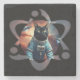 A playful and quirky sticker featuring a black cat dressed as an astronaut, floating in space surrounded by aliens and a glowing atom. Perfect for science fiction fans and cat lovers alike.